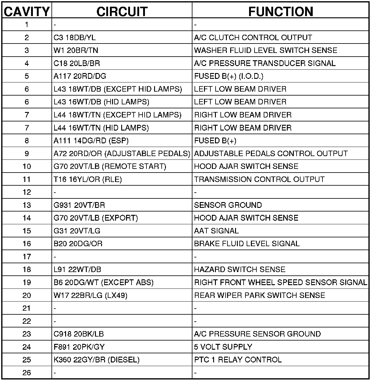 Connector C2 - (HEADLAMP AND DASH) 26 WAY