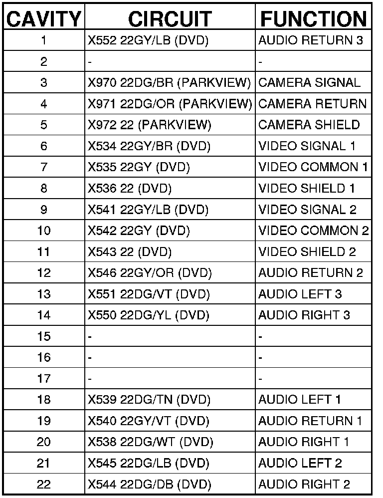 Connector C3 (DVD/PARKVIEW) - (INSTRUMENT PANEL) 22 WAY