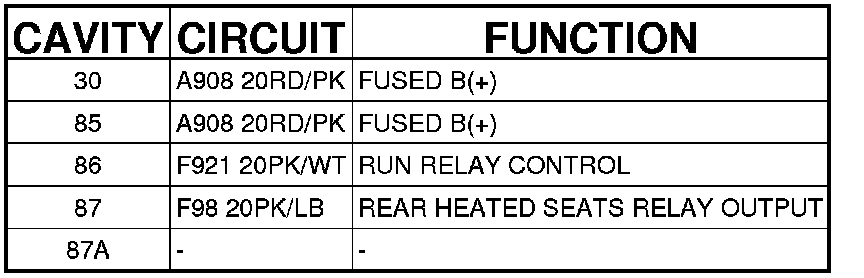 RELAY-HEATED SEATS-REAR (REAR HEATED SEATS) - (IN PDC) 5 WAY