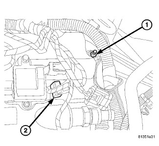 5. Install ignition coil capacitor (2) and fastener.