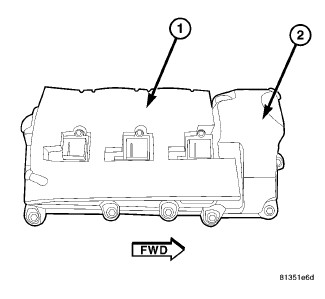 9. Install foam insulator (1) on top of cylinder head cover (2).