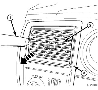 1. Using Trim Stick C-4755 (1) or equivalent, gently pry the air outlet barrel(s) (2) out of the instrument panel air outlet(s) (3) as required.
