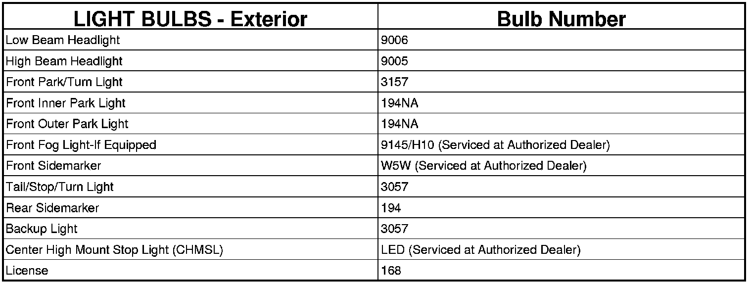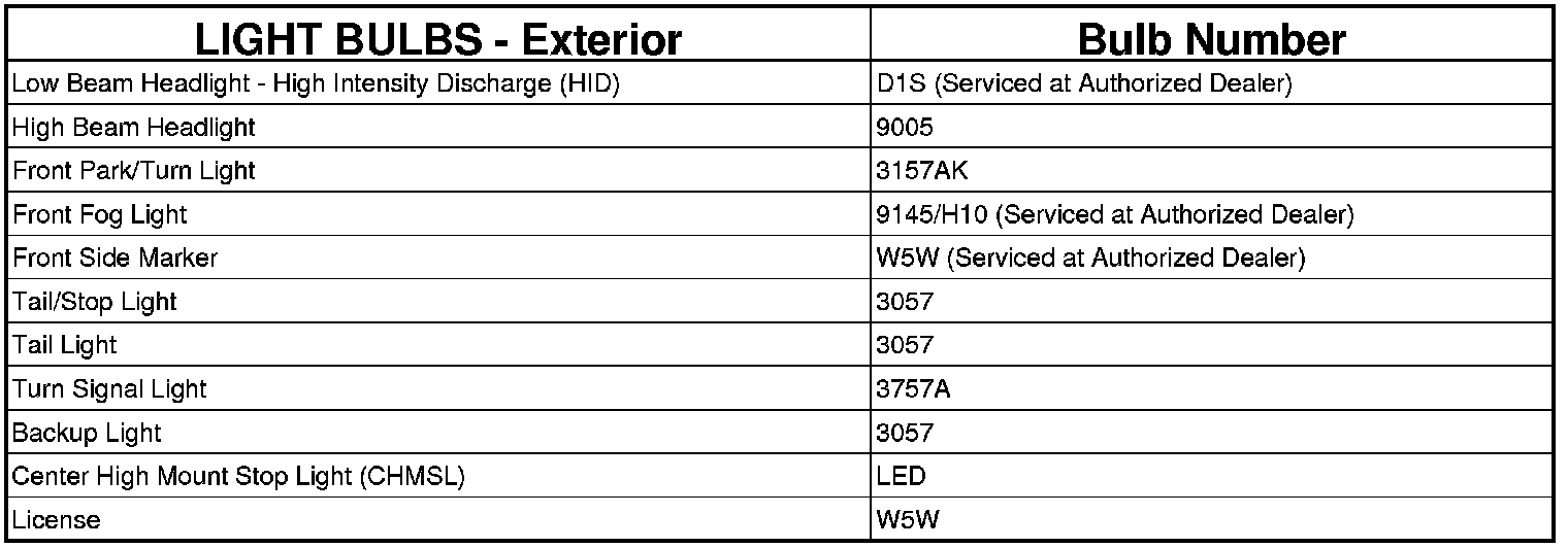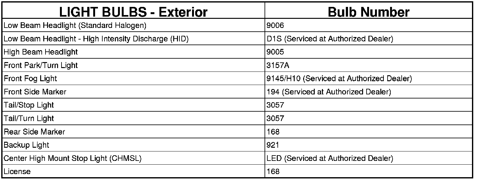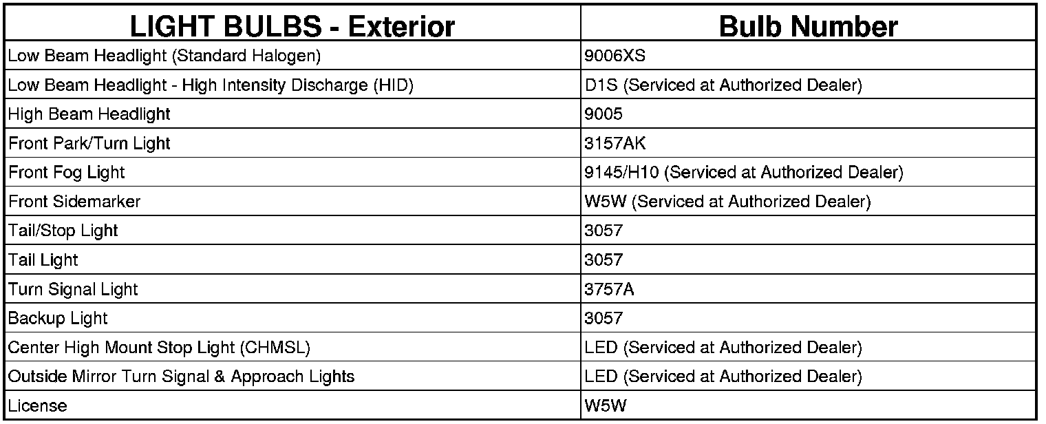 REPLACEMENT LIGHT BULBS - EXTERIOR