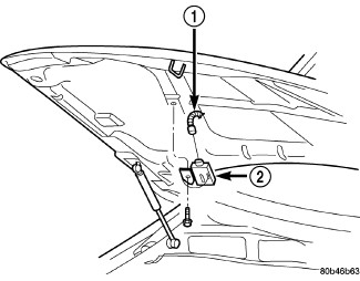 1. Position the underhood lamp unit (2) on the hood inner panel.