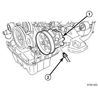 11. 5.7L/6.1L Engines - Install pressure hose (2) to pump (1). Tighten pressure hose tube nut to 47 Nm (35 ft. lbs.).