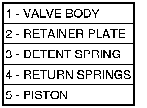 The 42RLE underdrive, overdrive, low/reverse, and 2/4 clutch hydraulic circuits each contain an accumulator. An accumulator typically consists of a piston, return spring(s), and a cover or plug. The overdrive (1) and underdrive (2) accumulators are located within the transmission case, and are retained by the valve body.