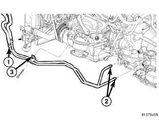 34. Install the transmission cooler line bracket (3) as equipped.