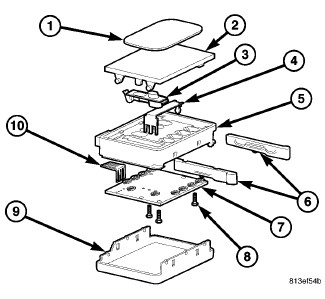 The rain sensor software is Flash compatible, which means it can be reprogrammed using Flash reprogramming procedures. However, if any of the hardware of the sensor is damaged or faulty, the entire rain sensor must be replaced. The rain sensor bracket (9) is serviced as a unit with the windshield glass. If the bracket is faulty, damaged, or separated from the windshield glass, the windshield must be replaced.
