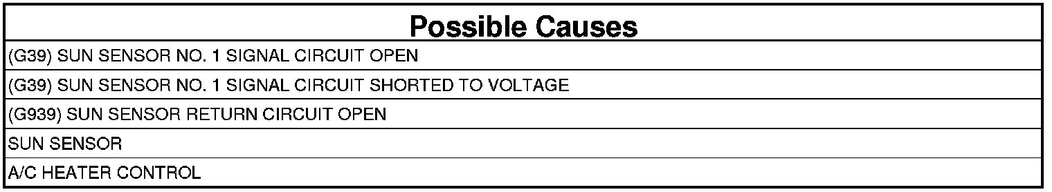 - Repair the (G39) Sun Sensor No. 1 Signal circuit for an open.