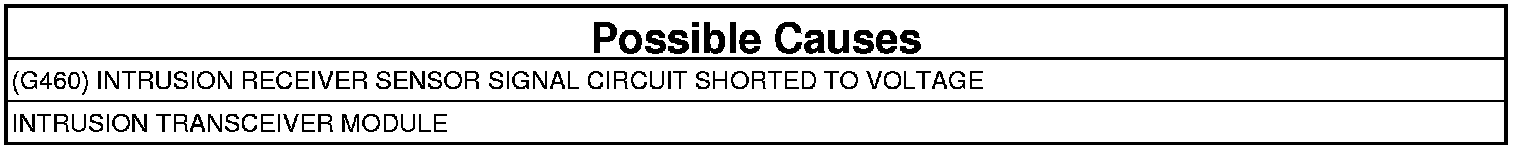 - Repair the (G460) Intrusion Receiver Sensor Signal circuit for a short to voltage.