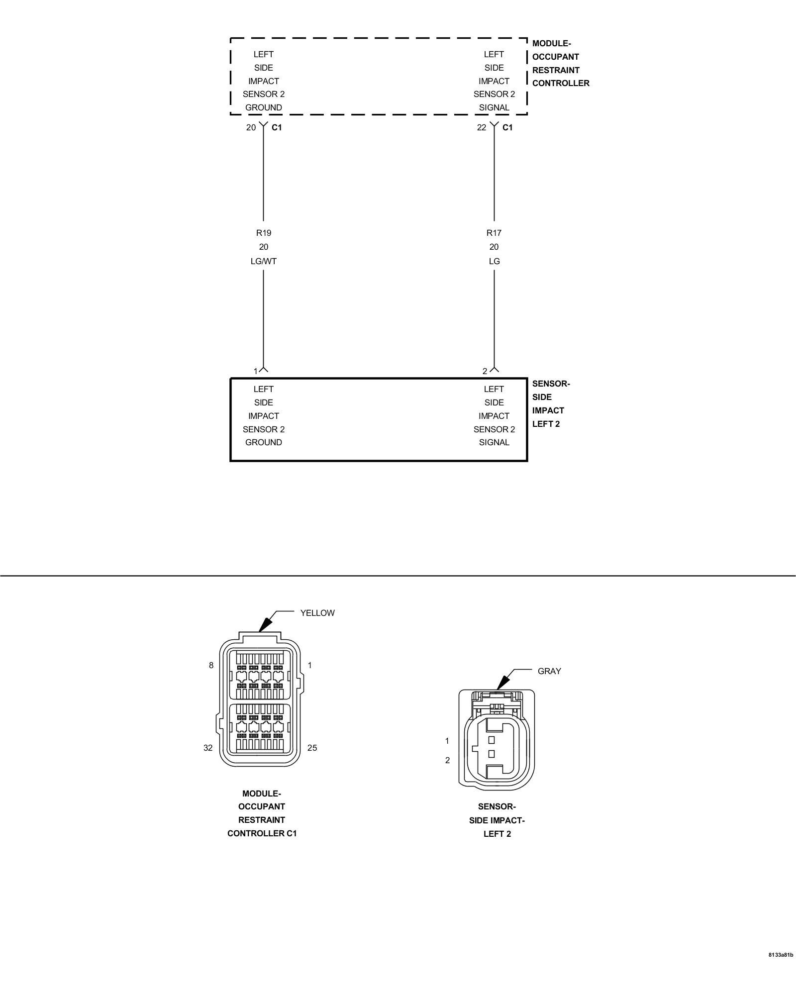 - Repair the (R19) Left Side Impact Sensor 2 Ground circuit for an open or high resistance.