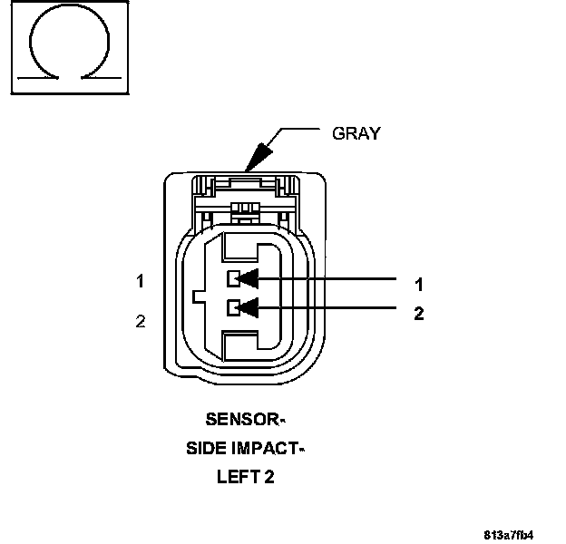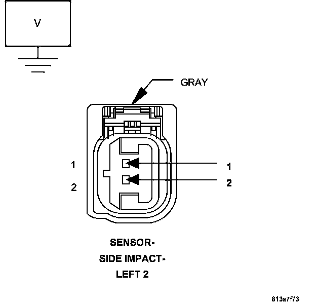 1. Measure the resistance between the (R17) Left Side Impact Sensor 2 Signal and (R19) Sensor Ground circuits at the Left Side Impact Sensor 2 connector.