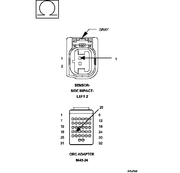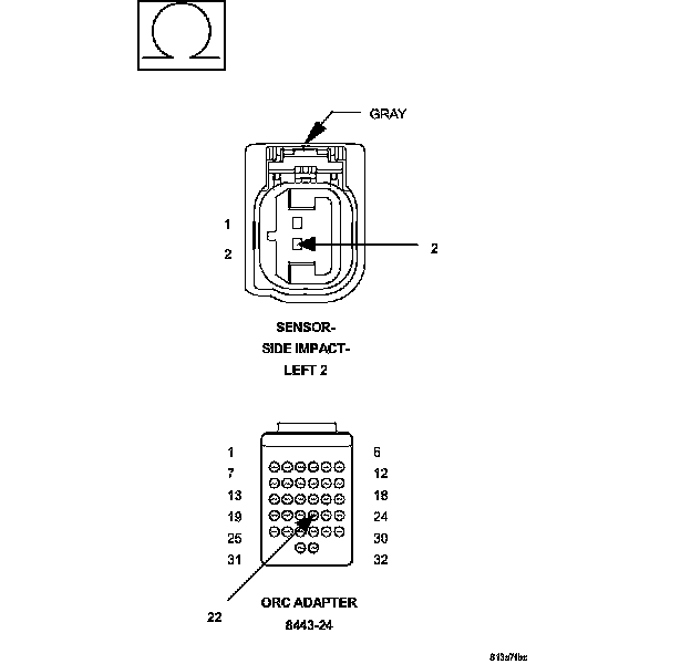 1. Measure the resistance of the (R17) Left Side Impact Sensor 2 Signal circuit between the Left Side Impact Sensor 2 connector and the 8443 Load Tool ORC Adaptor.