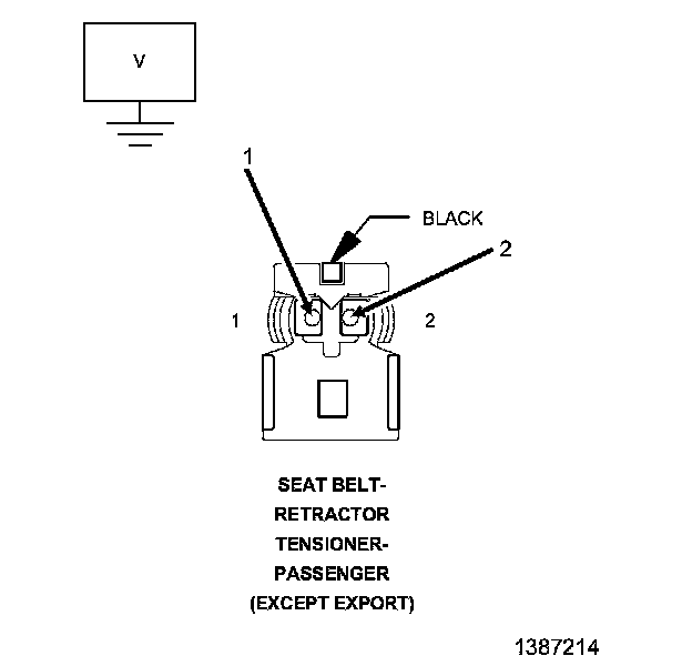 4. Measure the voltage of the (R506) Passenger Seat Belt Retractor Tensioner Line 1 circuit between the Passenger Seat Belt Retractor Tensioner connector and ground.