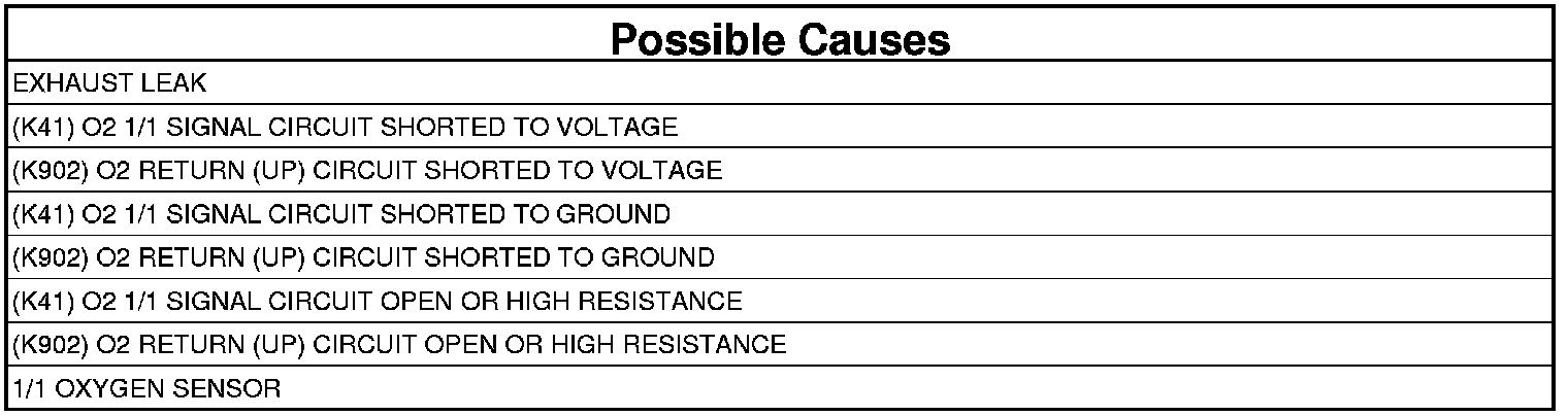 - Repair the (K41) O2 1/1 Signal circuit for a short to ground.