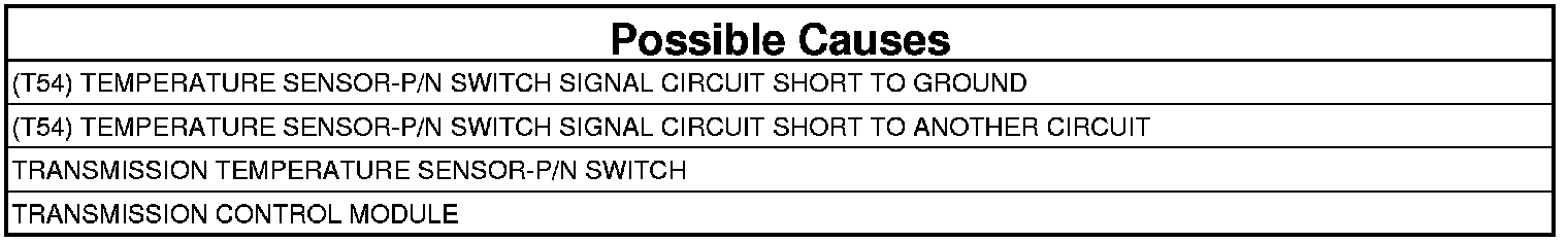 - Repair the (T54) Temperature Sensor-P/N Switch Signal circuit for a short to another circuit(s).