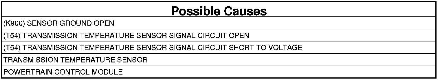 - Repair the (T54) Transmission Temperature Sensor Signal circuit for a short to voltage.