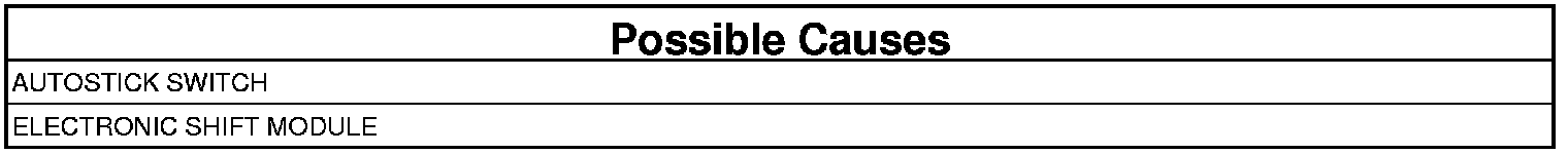 When the expected AutoStick(R) switch state is not correctly sensed by the Electronic Shift Module (ESM). If the upshift switch signal is detected as active in a gear position other than drive or when both the upshift and downshift signals are active at the same time.