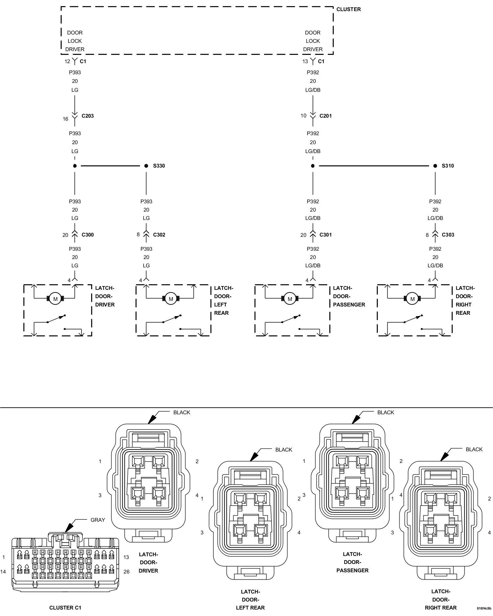 Both the Door Lock Driver circuits (P392 and P393) are connected together inside the Cluster. Therefore either circuit shorted will affect all door locks. Depending on where the short is, some doors may lock.