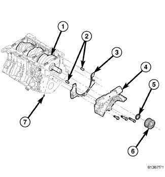 1. Prime oil pump (4) before installation by filling rotor cavity with clean engine oil.