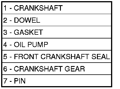 2. Install oil pump (4) and gasket (3) carefully over the crankshaft. Position pump onto block and tighten bolts to 28 Nm (250 in. lbs.).