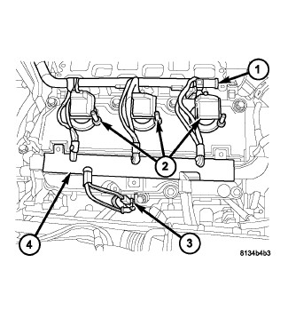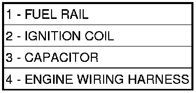 8. Properly position the left engine harness (3) and connect the ignition coil (2) and fuel injector harness connectors.