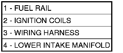 5. Properly position the right engine harness (4) and connect the oxygen sensor, knock sensor, EGR, fuel injector and ignition coil harness connectors.