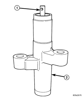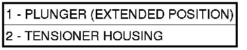 Inspect hydraulic tensioner (2) for fluid loss around the plunger (1) seal. Replace tensioner if leaking.