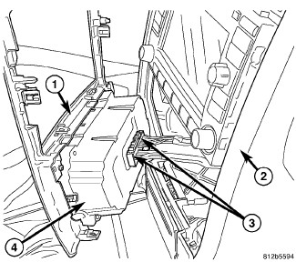 3. Connect the wire harness connector(s) (3) to the A/C-heater control (4) and install the instrument panel center bezel (1) to the instrument panel (2) Instrument Panel Bezel - Installation.