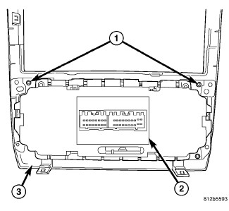 2. Install the four screws (1) that secure the A/C-heater control to the instrument panel center bezel. Tighten the screws to 2 Nm (17 in. lbs.).