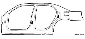 Four side impact sensors are used on this model when it is equipped with the curtain airbags, two each for the left and right sides of the vehicle. The sedan and wagon side impact sensor locations are identical. These sensors are mounted remotely from the impact sensor that is internal to the Occupant Restraint Controller (ORC). Each side sensor is secured with two screws to the inner right or left B-pillar and C-pillar within the passenger compartment.