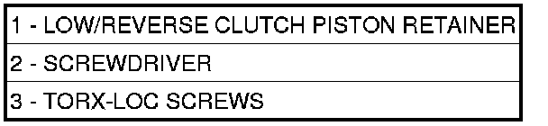 4. Install low/reverse piston retainer-to-case screws (3) and torque to 5 Nm (45 in. lbs.).
