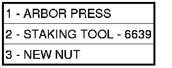 CAUTION: Failure to stake nut could allow the nut to back-off during use.