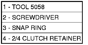 NOTE: Verify that Compressor Tool 5058A (1) is centered properly over the 2/4 clutch retainer (4) before compressing. If necessary, fasten the Compressor Tool 5058A bar to the bellhousing flange with any combination of locking pliers and bolts to center the tool properly.