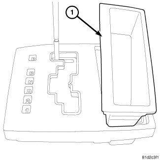 3. Depress the BTSI override (2) on the inside of the shifter assembly (1).