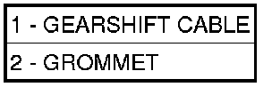 9. Remove the gearshift cable retainer (2) from the notch (2) in the shifter assembly.