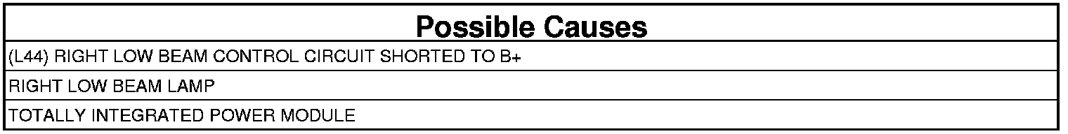 - Repair the (L44) Right Low Beam Control circuit for a short to battery condition.