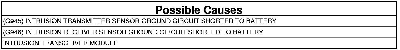 - Repair the (G946) Intrusion Receiver Sensor Ground circuit for a short to voltage.