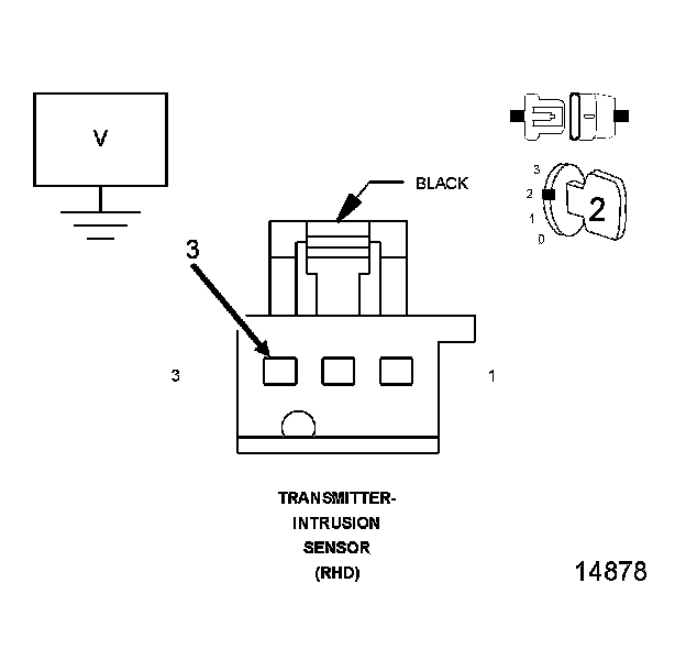4. Measure the voltage of the (G945) Intrusion Transmitter Sensor Ground circuit in the Intrusion Sensor Transmitter connector.
