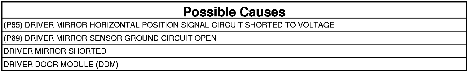 - Repair the (P65) Driver Mirror Horizontal Position Signal wire for a short to the other wire.