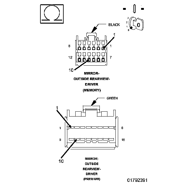- Check and repair the (P69) Driver Mirror Sensor Ground circuit for an open from the mirror connector to the module connector. If OK, replace the Driver Door Module.