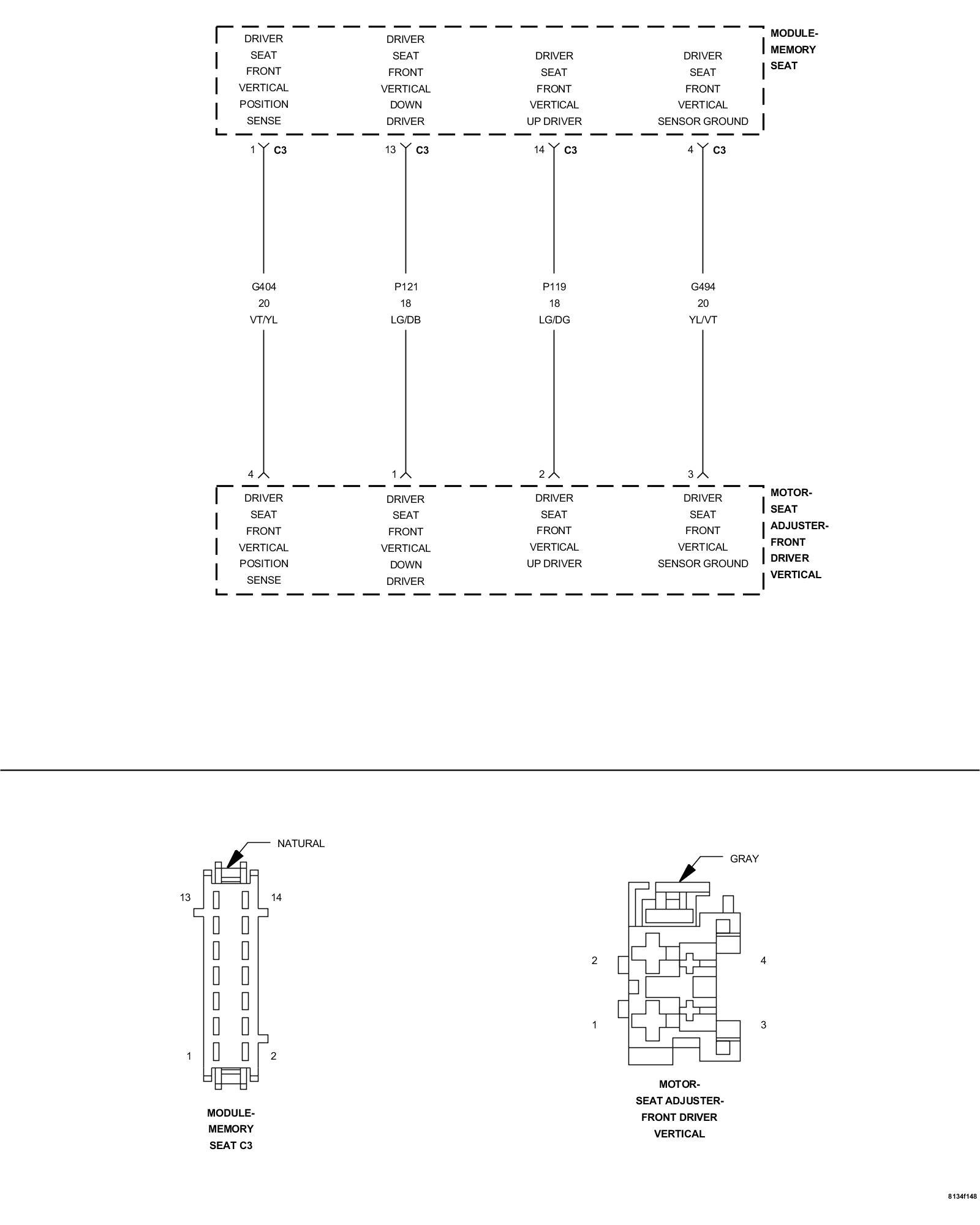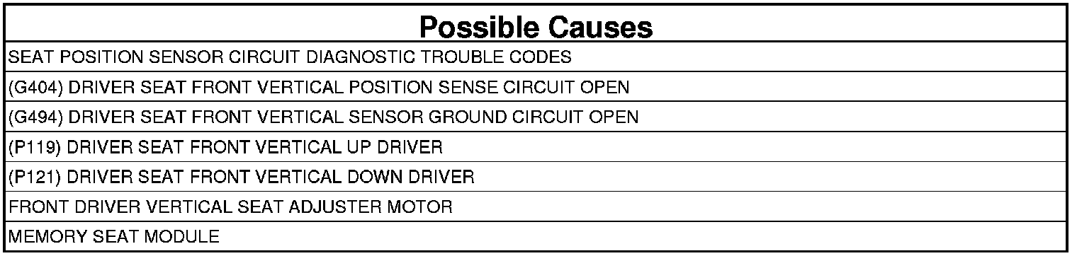 - Repair the (G404) Driver Seat Front Vertical Position Sense circuit for an open.