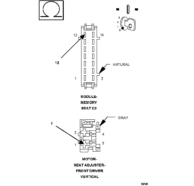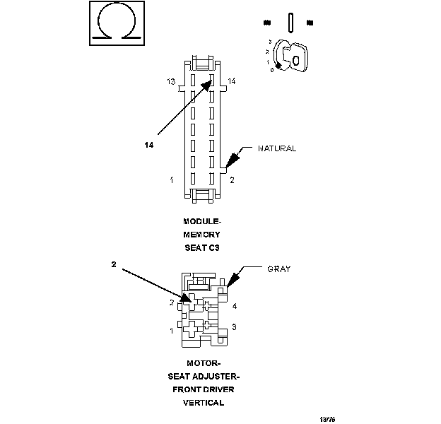 1. Measure the resistance of the (P121) Driver Seat Front Vertical Down Driver circuit at the Driver Front Vertical Seat Adjuster Motor connector to the C3 connector.