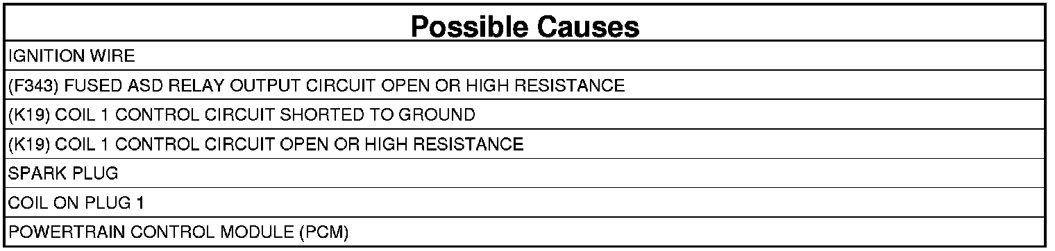 5. Using a 12-volt test light connected to ground, check the (F343) Fused ASD Relay Output circuit in the Coil On Plug 1 harness connector.