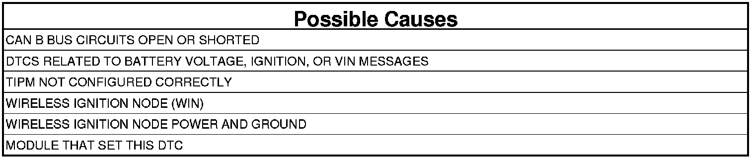 NOTE: Check for TIPM configuration, CAN B or C hardware electrical, VIN Missing/Mismatch, battery or ignition related DTCs.