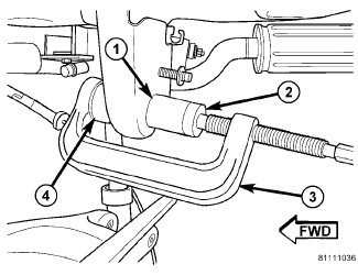 1. Position bushing (1) over rear of crossmember bushing bore.