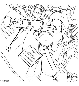 Attach pressure tester (7700 or an equivalent) (1) to radiator filler neck.