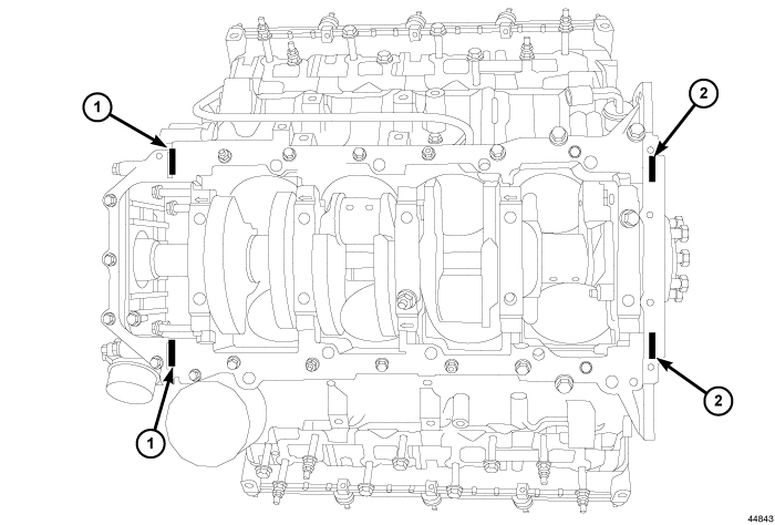 2. Apply Mopar(R) Engine RTV at the 4 T- joints (1,2).