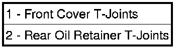 NOTE: Mopar(R) Engine RTV must be applied to the 4 T-joints, (area where front cover, rear retainer, block, and oil pan gasket meet). The bead of RTV should cover the bottom of the gasket. This area is approximately 4.5 mm x 25 mm in each of the 4 T-joint locations.