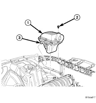 50. Lower air cleaner housing assembly (1) aligning the locating pin (3).